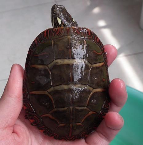 锦龟(Chrysemys,)是小型的淡水龟类,成年体长10-25.cm,属小型水龟。雄龟具有加长的前爪,和粗长的尾部。而雌龟一般体型较大,前爪较短,尾巴也比较短和细。