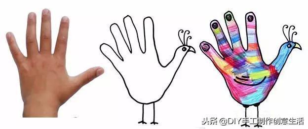 这个非常适合小朋友,用小手比一下,然后在手掌印上创作,话说小编小时候也是这样玩。你们小时候也玩过吗?