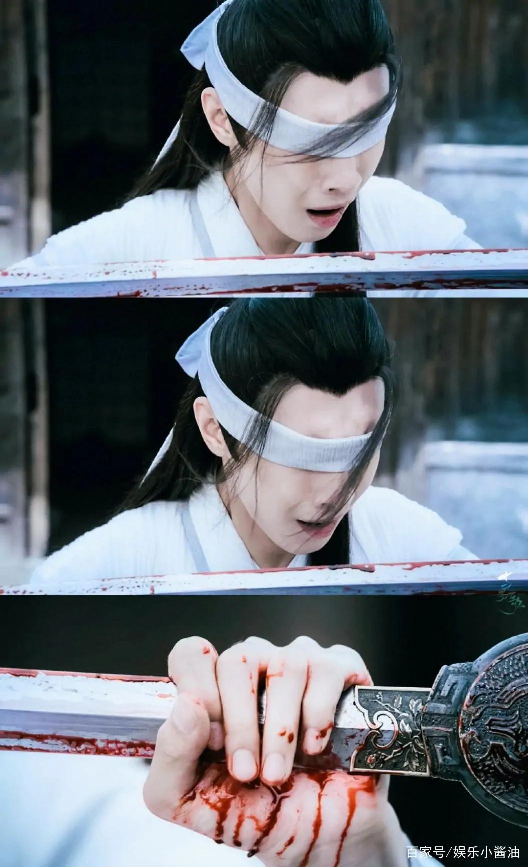 白色的绷带已彻底被染成红色,晓星尘满脸鲜血,没有眼珠,流不出泪水。被欺骗了几年。将仇人当做好友。善意被人践踏。自以为在除魔降妖,双手却沾满无辜之人的鲜血。亲手杀了自己的好友!他只能痛苦地呜咽道:“饶了我吧。”最后,他拿起自己的霜华自刎,就这样解脱了吧,他在用生命赎罪。随着那一声长剑滚落的清响,薛洋的笑声和动作瞬间凝固了。