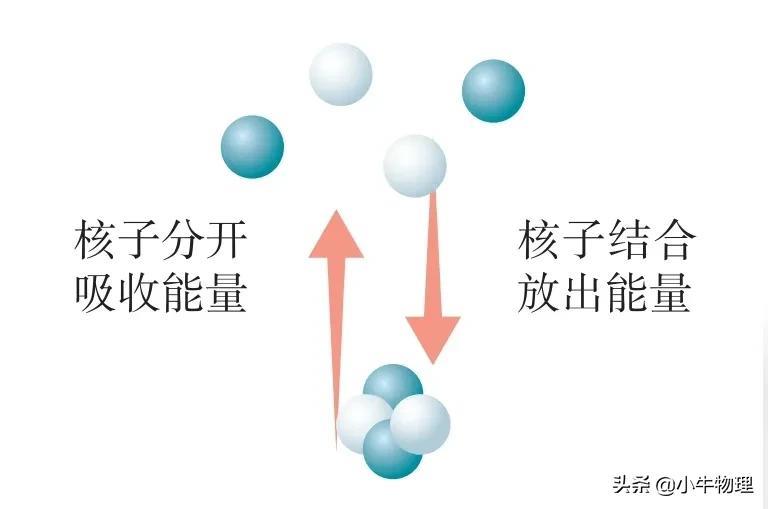 ☞如图,氦原子核是由两个质子和两个中子凭借核力结合在一起的,要把它们分开,需要吸收能量。反过来,4个核子结合成氦原子核要放出能量。那么,把核子分开需要的能量与核子结合放出的能量有什么关系?