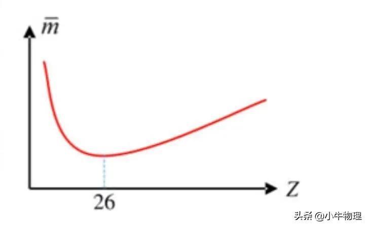 比结合能,就是平均每个核子释放出来的能量,释放出来的越多,平均每个核子剩下的能量就越少,由E=mc²可知,平均每个核子的质量也就越小,如右图所示,其中⁵⁶₂₆Fe原子核的平均核子质量最小。