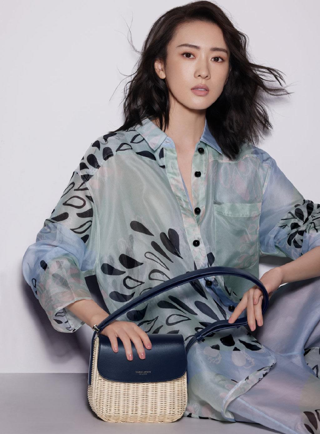 说到奢饰品的包包,那阿玛尼是必须有名字的。她家的包包虽不像爱马仕家有那么多经典包,但也是很不错的。比如童瑶拿的这个米色和深蓝拼色的编织的包包就很特别,有一点田园风格。