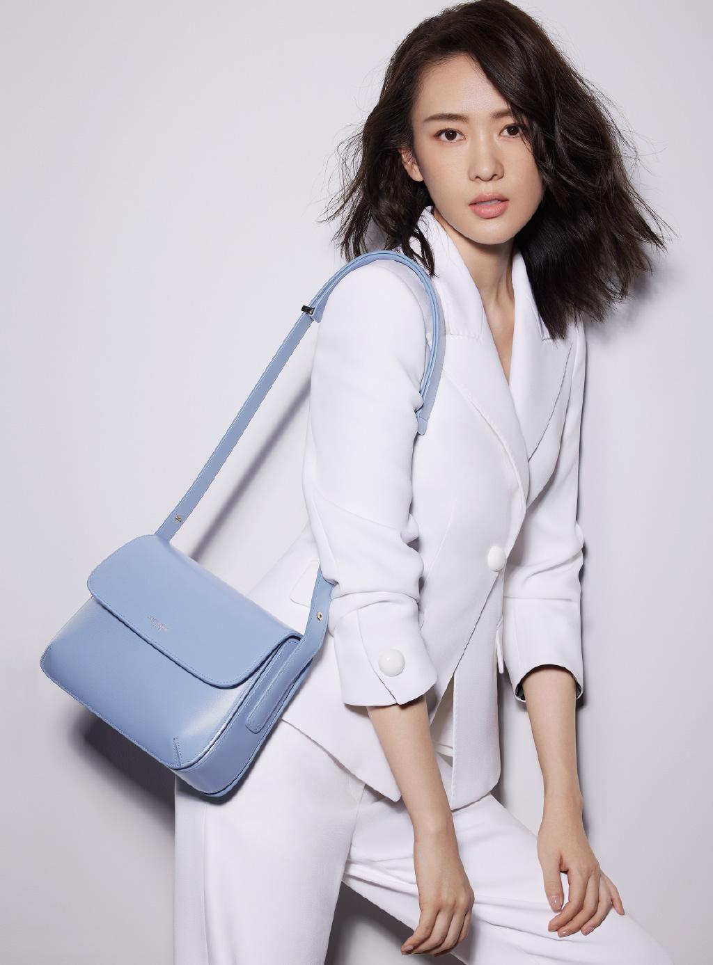蓝色的包包除了配蓝色的衣服,和白色的衣服搭配也是非常清爽的。上图还是童瑶,她穿了一件白色的收腰小西装,搭配一条白色的阔腿裤。背一只淡蓝色的翻盖单肩包,清爽又大气。这套也很适合穿去上班。