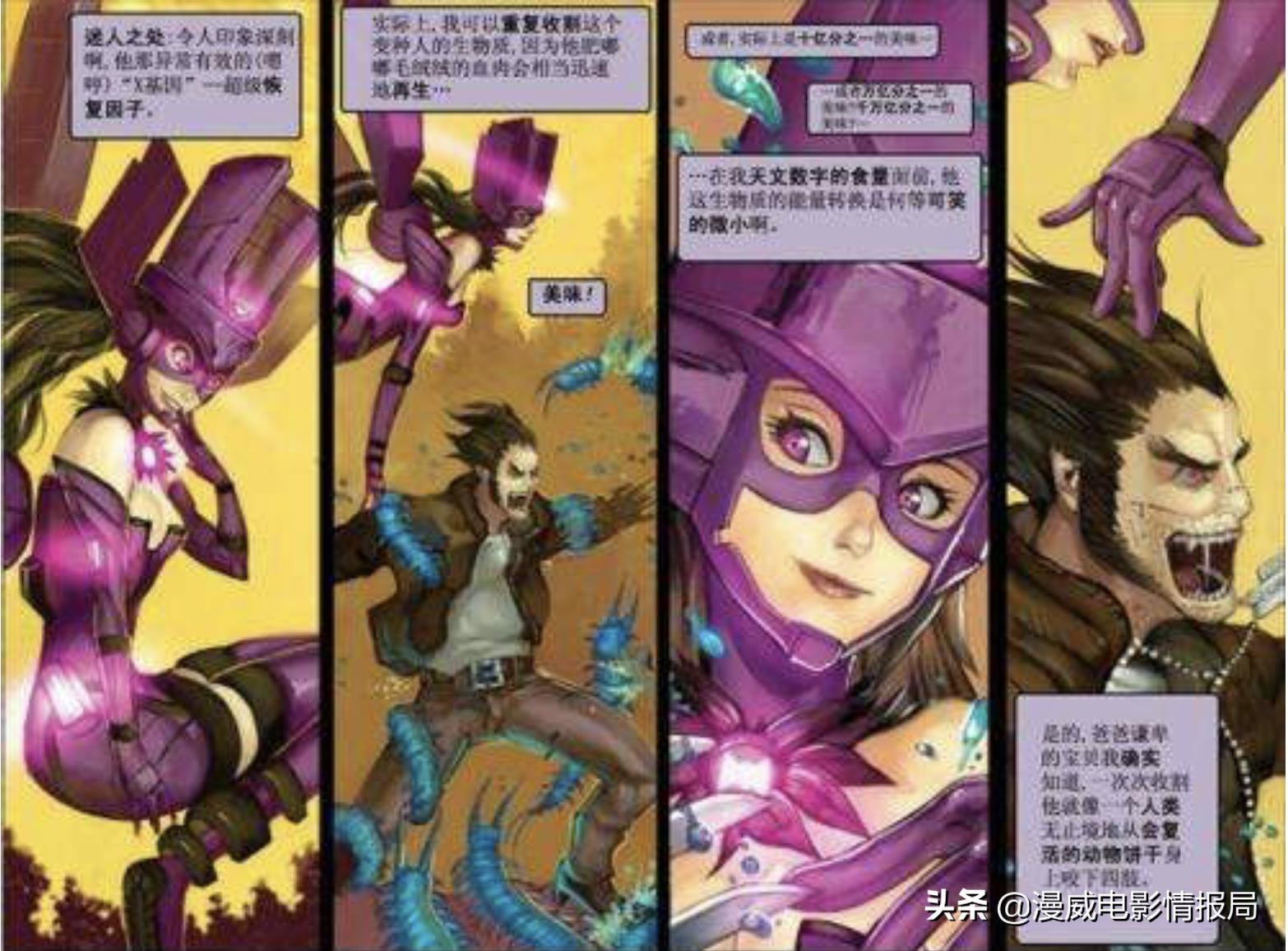 从漫威吞叔这个量级的设定来看,所进食的能量单位基本上都是星球量级,但是对于伽娜塔来说,却是可以精细化到一个细菌的能量汲取!