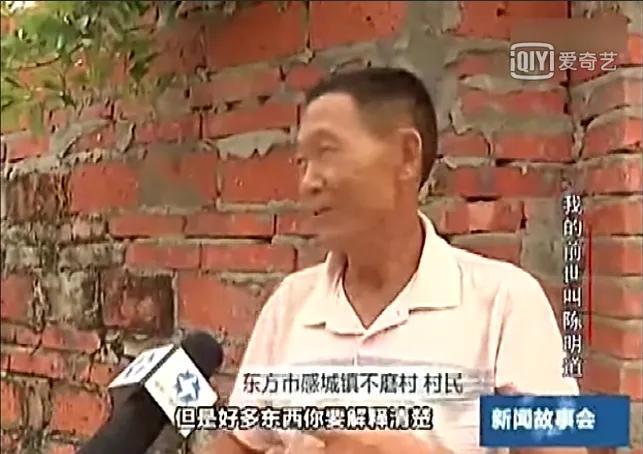 陈三爹的家已是破败不堪,几个女儿早已出嫁,成了孤苦无依的五保老人,当听了唐江山的介绍后,一下子就怔住了。唐江山则熟练地从父亲背上下来,很熟练地去了他前世住的房间,并从里面抱出供奉陈明道的牌位说:“现在我是活人,没必要再放上了。”唐江山还告诉陈三爹以前他睡哪个房哪张床,并一一数出他以前常用过的东西。陈三爹见他说得一丝不差,儋州话十分流利,就确认了他是陈明道的转世,不禁抱其他大哭了一场。这时,村民们听说了这样的奇事,都纷纷前来围看。小唐江山竟能在人群中一一认出陈明道生前的好友及本家堂弟,而且夹杂在人群中,原陈明道生前的情人谢树香,他也一眼认了出来。据说谢树香与陈明道恋爱,原本1968年要结婚的,谁知陈明道1967年竟被人杀死。后来谢树香只好与一小学教师结婚,在唐江山来认亲时,她已是三十多岁有几个孩子的母亲了。