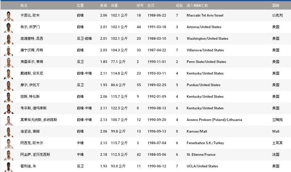附录:2016-2017赛季鹈鹕队球员名单: