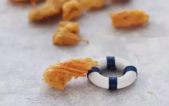 虾肉也就算了,光是虾头居然也能做成零食?本着想要diss它的心情品尝之后,探员们纷纷倒戈了。小指大小的虾头,裹上一层粉油炸出来的,入口非常酥脆。日式咖喱味?好像没怎么吃出来,反而被一股烧烤味抢了戏份,调味稍有些重,多吃几颗觉得很咸,但因为越嚼越香,越香越停不下来,这么一小包根本不够吃的。