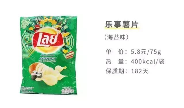 虽然比起上头那个扇贝味薯片来说稍显普通逊色,但这绝对也是款好吃的薯片了。大概是因为薯片表面有许多海苔碎末的关系,海苔味存在感强,不像有些国内某些海苔味零食,就只是把海苔味做在零食的调味里而已。香、脆,调味都没什么毛病,后味甜甜的,而且没那么油腻,总感觉比国内乐事好吃一点。同上,跺脚求魔都哪里有得卖这款薯片。