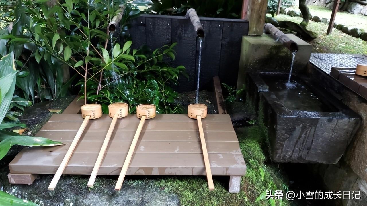 参拜神社与寺庙前提供清水洁净手与口的设施。一般是先在水池边用一个长柄木勺净手。