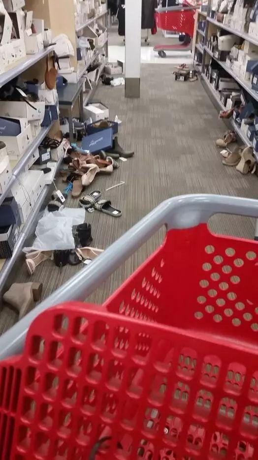 你在商场购物的时候,想去试双鞋,竟然看到了这一幕,一点买鞋的欲望都没有了,一切都烟消云散了。