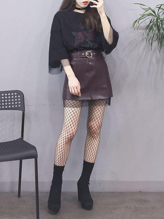加网纱边的短裙再加鱼网袜的短靴搭配,绝对的性感风格