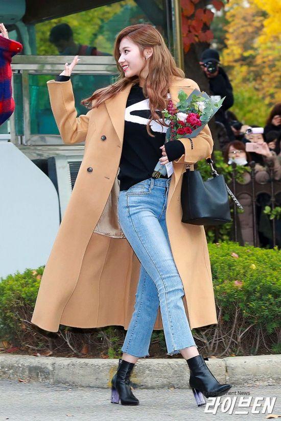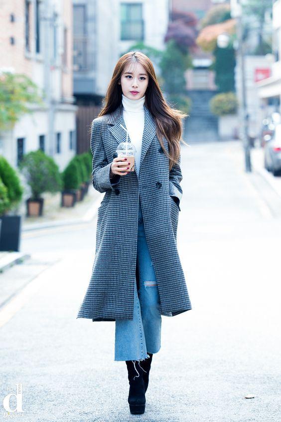 短靴搭配紧身小脚裤,微微露出的袜子细节值得参考