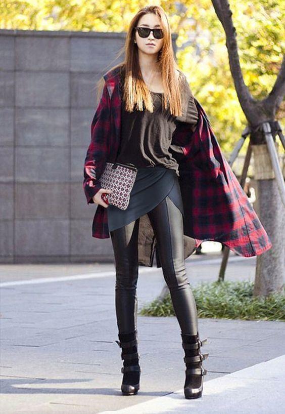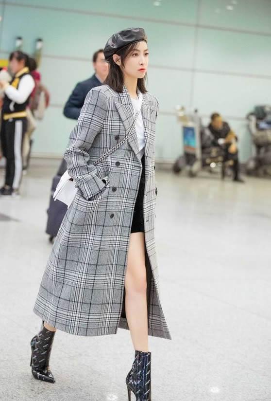 棕色短靴搭配格纹短裙,不再是黑色了成就了温柔少女范
