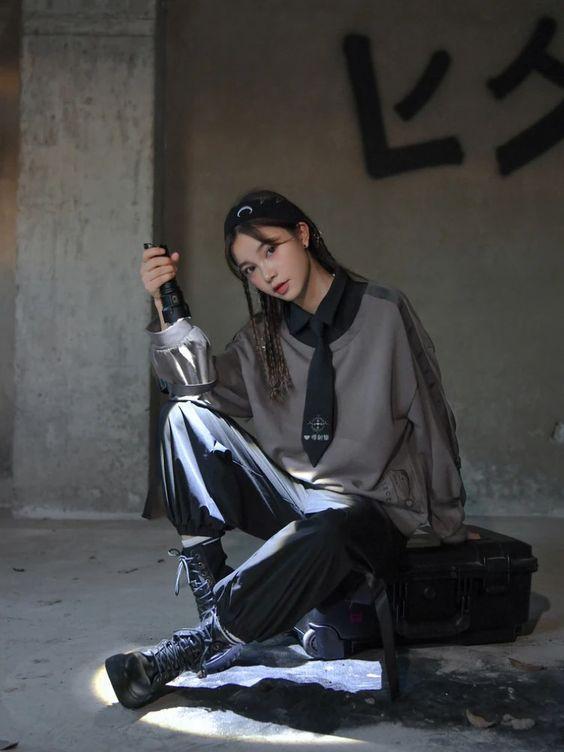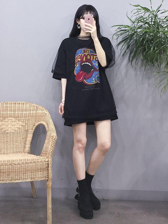 大尺寸图案T恤的短靴搭,日韩少女风格