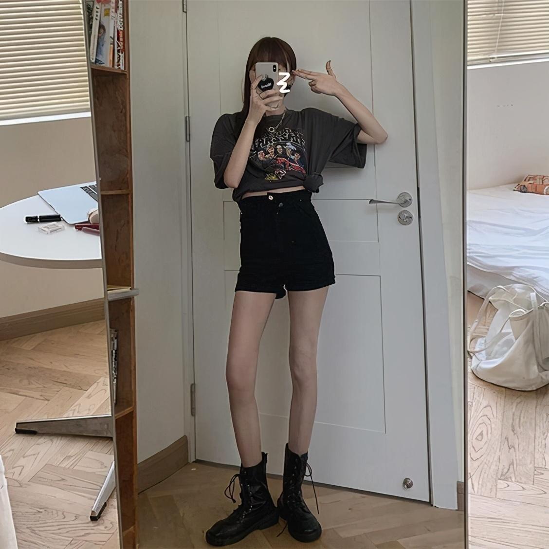 欧美风格,短靴搭配牛仔短裤(和上面搭配一样可以考虑打底裤,根据颜色选择肤色更好)