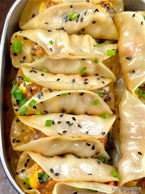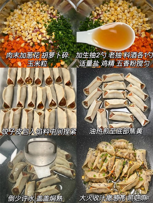这款锅贴将韭菜和玉米作为主要馅料,口感鲜美,营养丰富。