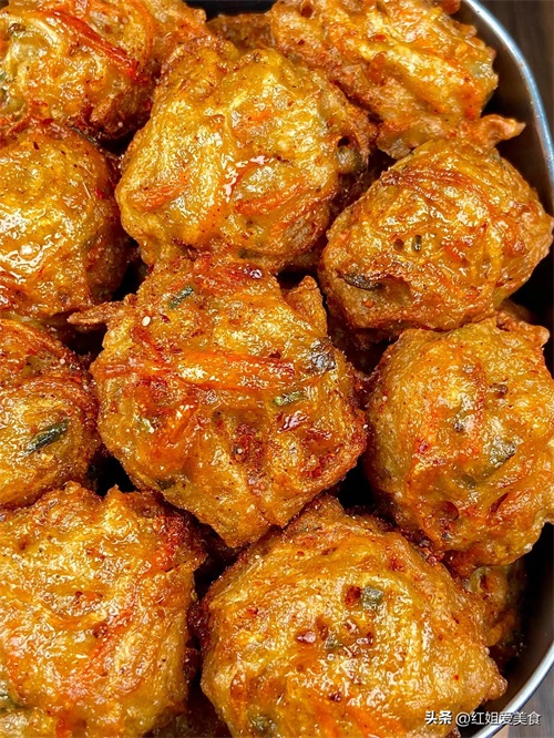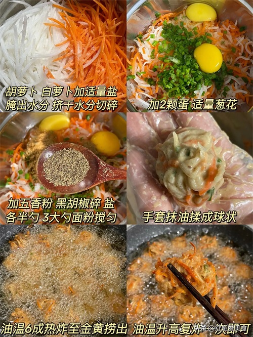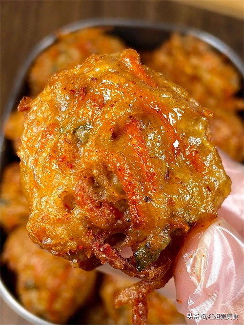 这道菜品以萝卜为主要食材,制作成丸子,经过油炸,外皮酥脆,内馅鲜嫩。