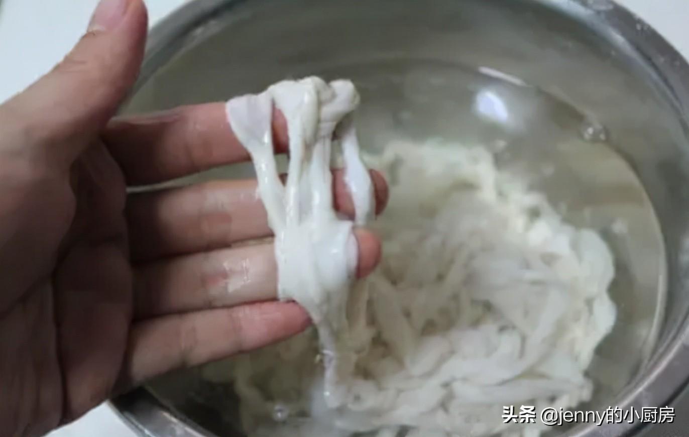肠衣先用凉白开洗几遍,去掉表面的盐,再重新加凉白开泡半个小时,如果洗好直接用的话,肠衣的弹性不好,相反泡过后弹性好,用起来更顺手,不易破。泡好后捞出控水就可以用了。