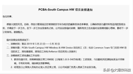 近日,近日华为手机的主要代工厂——伟创力停止了与华为的合作关系,在网上引起了轩然大波,根据相关网友在“珠海伟创力吧”的爆料,珠海伟创力一些部门从5月22日就开始放假了。其中B13部门更是直接从5月23日开始放假8天。