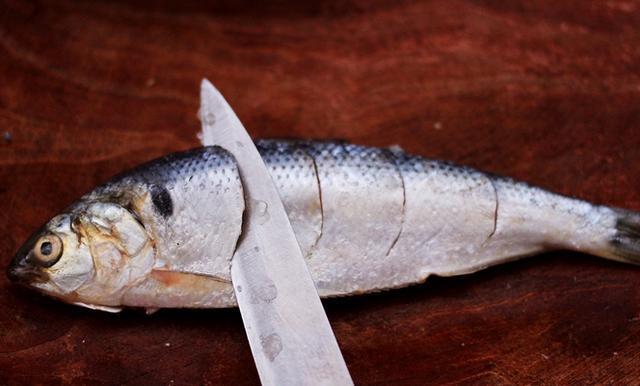 3、接着将每条洗净的海鲫鱼做花刀,这样调料才会更好的入味,在炸的时候才会被炸透。