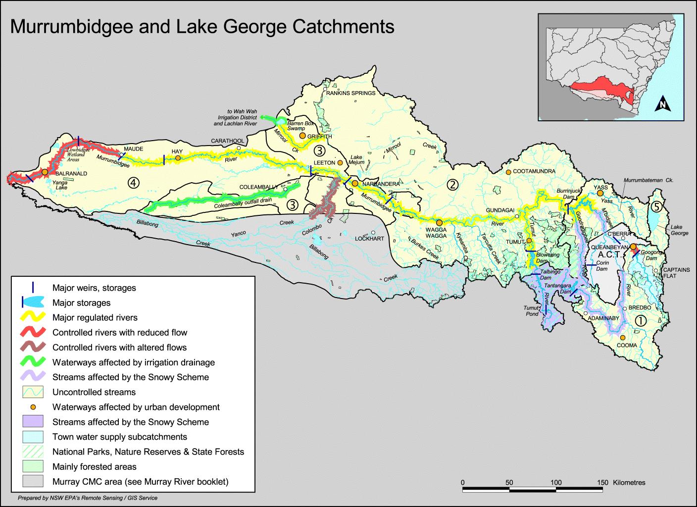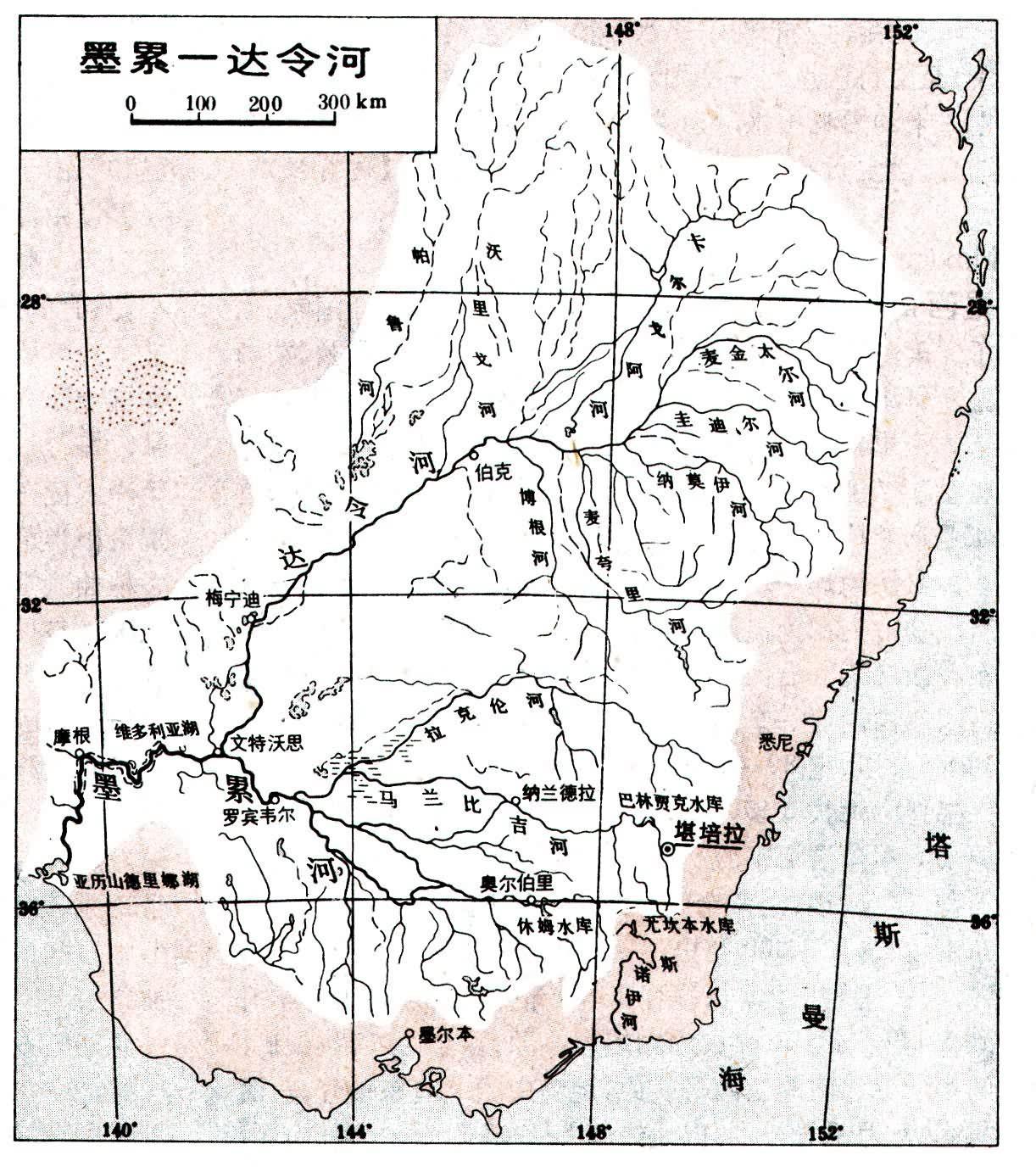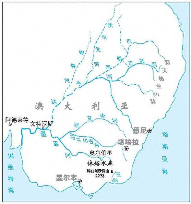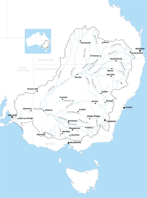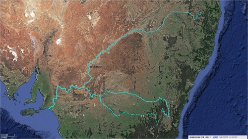 墨累河位于澳大利亚东南部,它是澳大利亚最长的河流,全长2508公里。其支流包括澳大利亚前六条最长河流中的五条(马兰比吉河、达令河、拉克兰河、瓦雷戈河和帕鲁河)。这些河流与墨累河一起形成墨累-达令盆地,流域面积106.15万平方公里,约占澳大利亚面积的七分之一,是澳大利亚最重要的灌溉地区。