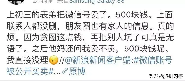 有亲戚把微信号卖了500块,家人信息都没删,还问自己卖不卖?