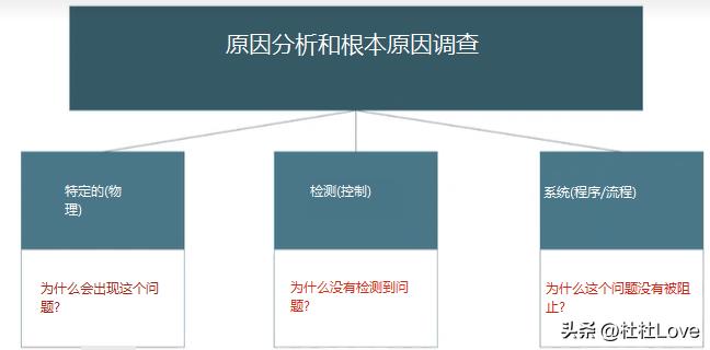 使用适当的工具和技术进行根本原因分析,如3L5Why分析、鱼骨图、流程图等。鼓励团队成员提供各种可能的原因,并进行合理推断和验证。确定导致问题的主要根本原因。