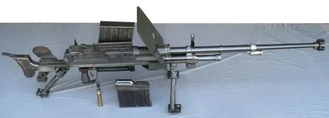 5发弹匣在机身上方,发射内藏钢芯的13.9毫米x99穿甲弹,能射穿在100米处的21毫米厚钢板,由于发射时会有强大的后座力,故枪托有援冲器和很厚的护垫,枪口有减震的防火帽!