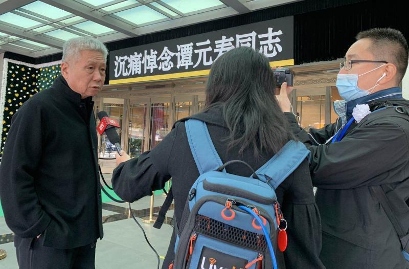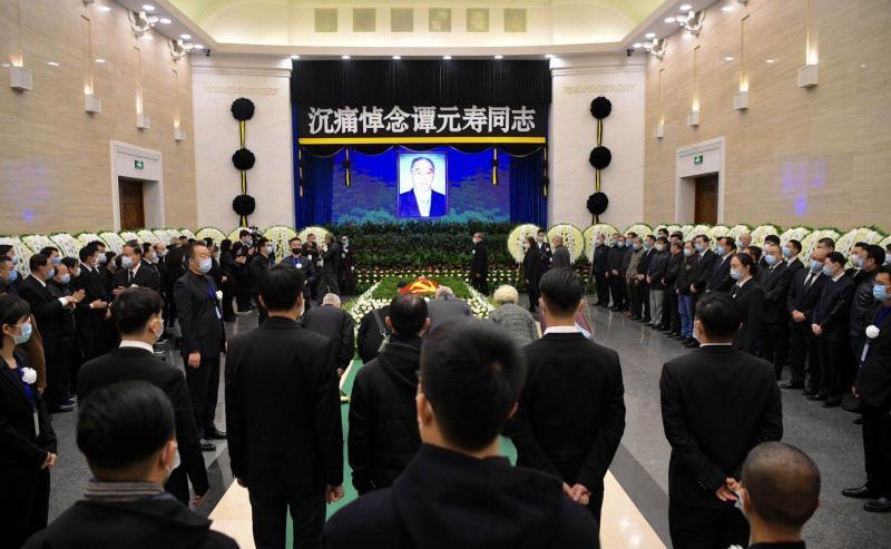 没有巨幅挽联和影像配乐,10月15日上午,京剧表演艺术家谭元寿遗体告别仪式在八宝山殡仪馆大礼堂举行。书法家欧阳中石题字:正宗一脉、大纛之家。蓝天野、尚长荣、马未都、刘长瑜、李幼斌、王珮瑜等众多文化界名人敬送了花圈,除谭家后人,叶少兰、赵葆秀、王蓉蓉、于魁智、李胜素、杜镇杰、迟小秋、胡文阁等艺术家专程赶来送别。