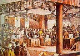 1895年,李鸿章去日本马关签订《马关条约》。