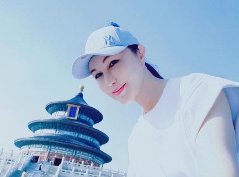 照片中,利菁脸上化着大浓妆,打扮精致,宛如贵妇。她的皮肤白到发光,眼角一丝皱纹也没有,完全看不出来是59岁的人。