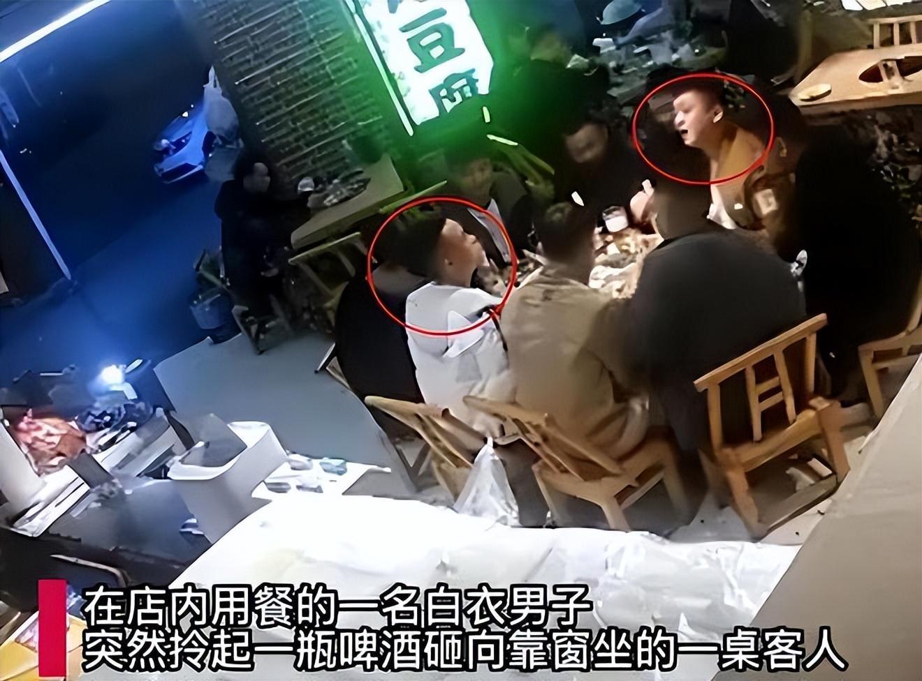 然而,突然间,一声怒吼打破了宁静,随后是激烈的争吵。一个穿着白衣的年轻男子将啤酒瓶狠狠地投向隔壁桌的墙壁,瞬间引发了冲突。愤怒的情绪很快升级,演变成一场可怕的群殴。