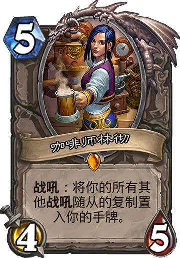 在炉石传说当中,战吼作为相对优秀的属性来说,往往具有很强力的效果。而且我们的卡组所带的战吼卡牌基本上都是自己挑选。有些优质战吼的重复利用手段就显得尤为重要。先前中立卡牌主要有小熊猫、蛇发女妖,而现在的新版本出现了咖啡师林彻这张中立橙卡。