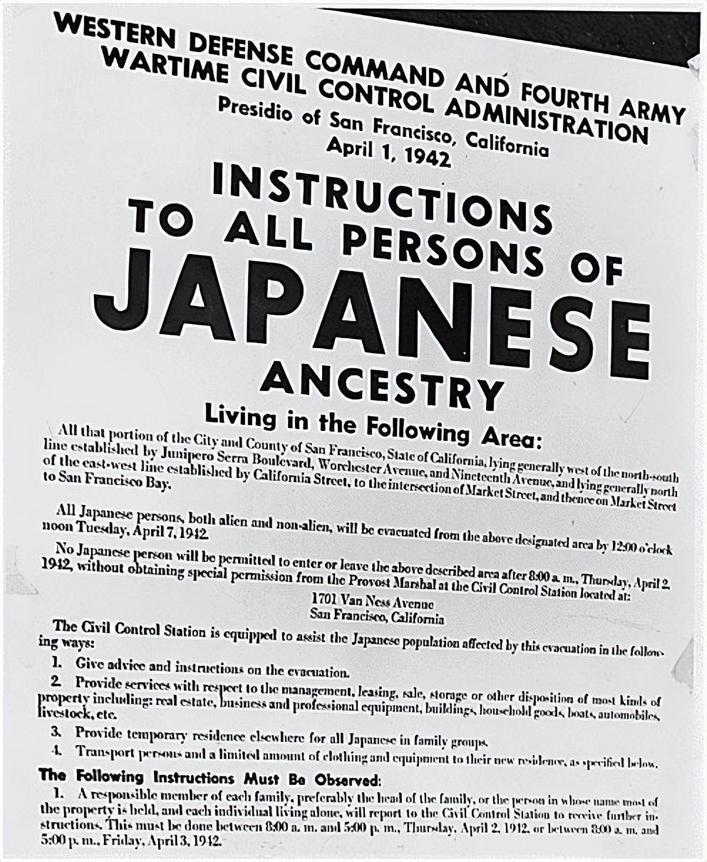 于是,在各方面压力下,美国总统罗斯福重拳出击,签署了第9066号行政命令,将日裔生活最多的几个地区,划定为军事区域,在这里边驱赶日裔就成了合理合法的行为。