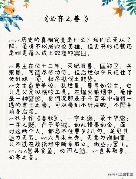 3、《必齐之姜 》作者:六月禾未秀