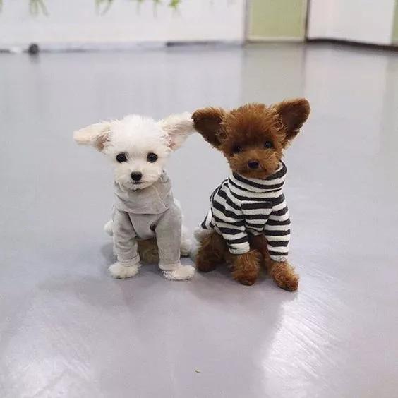 这只立耳小泰迪,是韩国的网红狗狗,名字叫Shu。很多人都觉得,Shu的耳朵是假的、是它的主人为了造型而迫使它的耳朵立起来的。其实不是,和Shu一起长大的,还有另外一只白色的泰迪El,小时候,两个小家伙的耳朵都是立耳。不过随着年龄的增长,El的耳朵慢慢地垂了下去。但是,Shu的耳朵却一直保持着立耳的状态。
