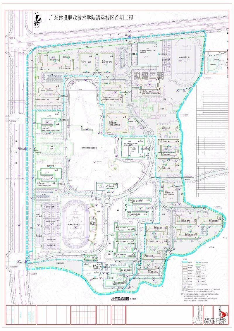 广东建设职业技术学院清远校区工程总平面规划图。图片来源:清远市城乡规划局