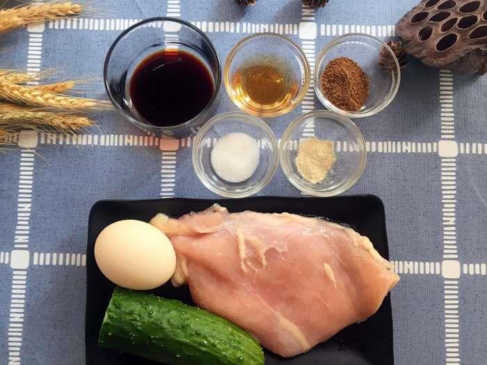 鸡胸脯一块,鸡蛋一个,黄瓜一小节。