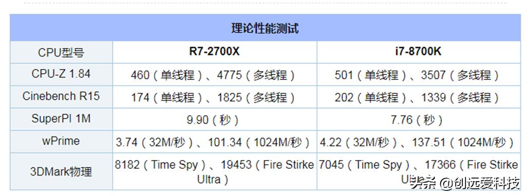 核心数:R7-2700x最大的优势是更多的核心数,八核心对战i7-8700k的六核心,结果可想而知了。