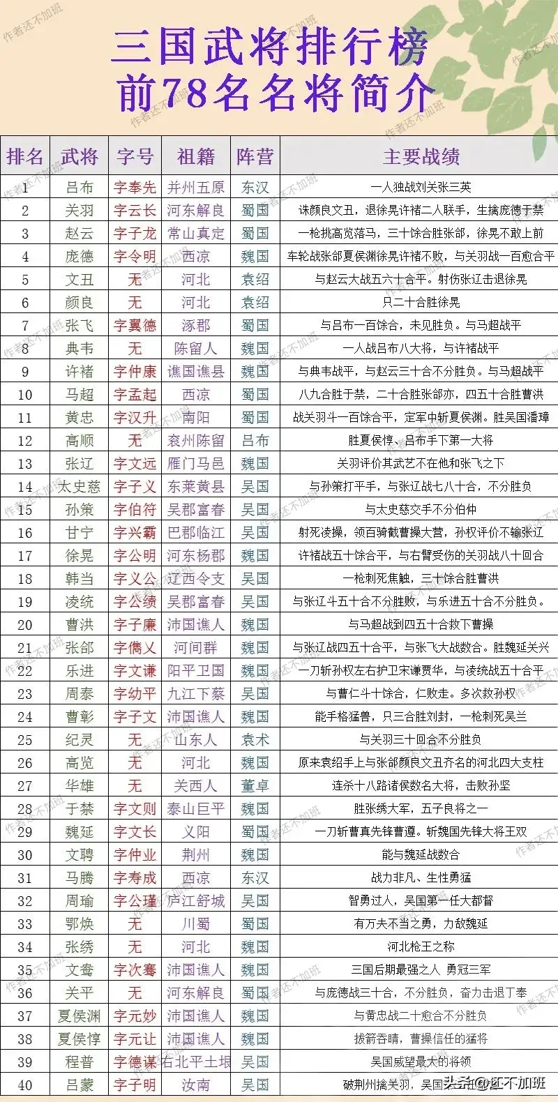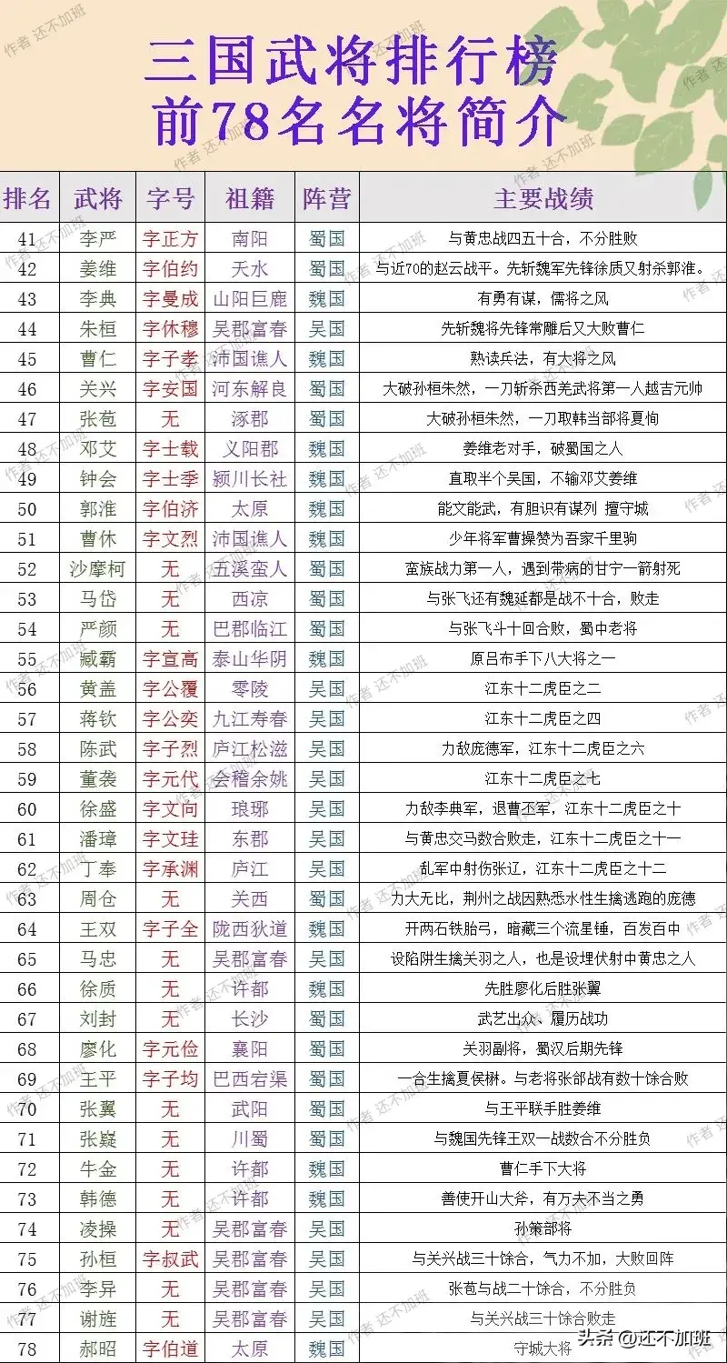 三国武将排行榜,三国前七十八名武将排行一览