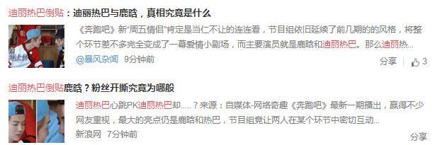 在新一季《奔跑吧》的节目中,迪丽热巴和鹿晗之间是被拿来炒作最多的,也是节目组进行宣传最多的。第一期中,迪丽热巴和鹿晗相拥,第二期中迪丽热巴和鹿晗之间通话CP,第三期中,迪丽热巴和鹿晗玩心跳游戏,完全摆脱了兄妹之间的包袱,赤裸裸组CP。正是这种不断发酵的CP,让双方粉丝产生了争议。对于节目组来说是达到了效果,但对于双方粉丝来说却撕的不可开交。