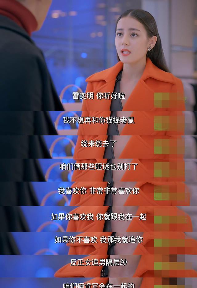 在《克拉恋人》中,迪丽热巴饰演的高雯倒追罗晋饰演的雷奕明,两人就像猫和老鼠一样,最终迪丽热巴靠着倒追的精神得到了雷奕明。