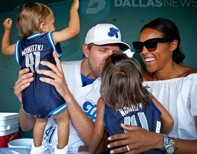 在诺维斯基的球衣退役仪式上,我们看到了他的美妻。诺维斯基是欧洲白人,他的妻子却是黑人,是NBA圈子里少有的黑白配。两人于2012年7月步入婚姻殿堂,如今已经携手度过了差不多10年,有了3个孩子,非常幸福美满。