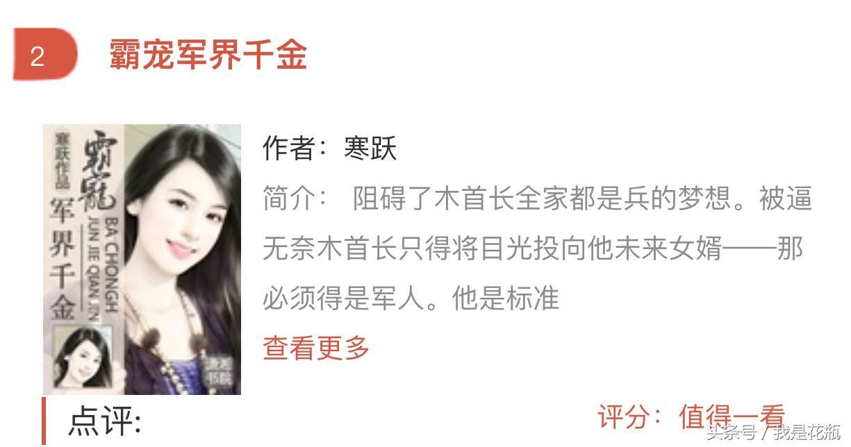 今天应粉丝的要求,推荐的是三篇“男主是军人”的言情宠文: