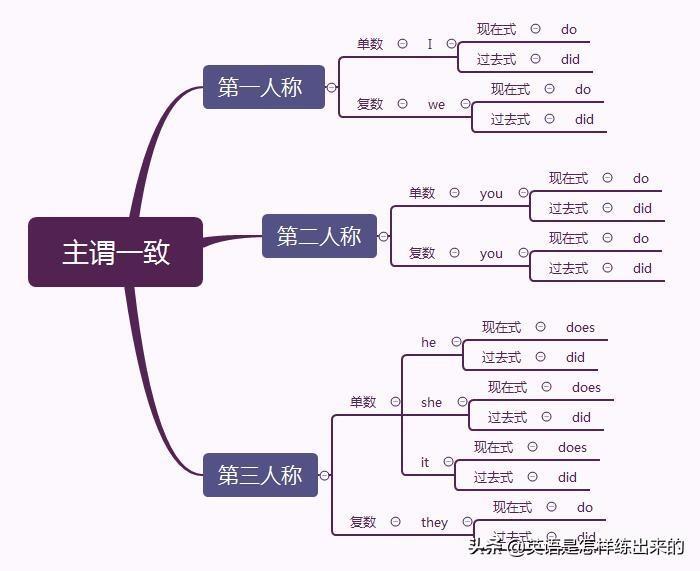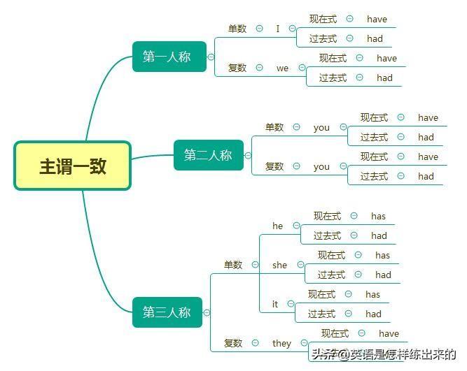 英语是门原形毕露的语言,所以不同人称、不同数作主语时,谓语的第一个动词,包括助动词、实义动词、系动词的词形要跟着变化,这种变化是有规律的,这种规律就是主谓一致。