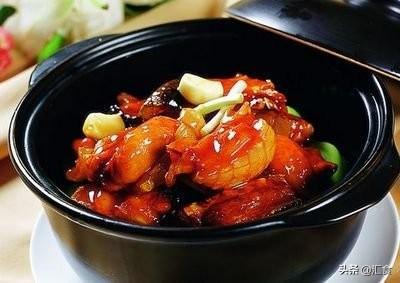 3、锅留底油,下入A料炒香,加水100克,烧开后放入B料,调匀,放入炸好的鳄鱼肉,再加水至淹过鳄鱼肉,小火焖30分钟,待锅里汤汁将干时滴淋芝麻油,出锅晾凉,装盘即可。