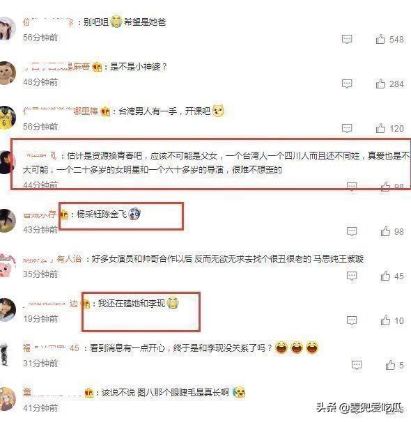 王紫璇和陈国富的恋情瓜,部分网友认为,双方不可能是父女,应该是青春换资源,而且双方又不是一个姓,真爱是更不可能了,20多岁的女明星和60岁的导演在一起,谁都会想歪。还有人提到了陈金飞和杨采钰,两人曾公开过恋情,这样的事情,在娱乐圈见怪不怪了。