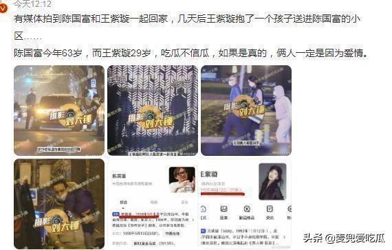 12月16日,又有媒体拍到恋情瓜了,而且这对恋情还是一对忘年恋,双方相差34岁,他们就是制片人陈国富和演员王紫璇,消息曝光后,迅速引发网友热议。