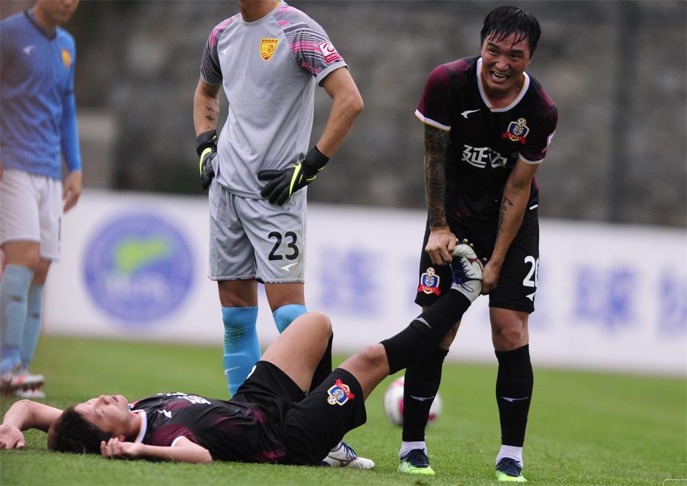 在比赛过程中,许波更是上演了温情一幕!当时,廉仁杰在禁区内倒勾射门后,出现了抽筋的状况。许波作为老大哥马上跑过去,抬起廉仁杰抽筋的腿,帮助按压,缓解疼痛。
