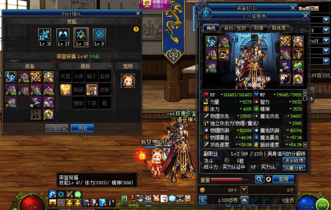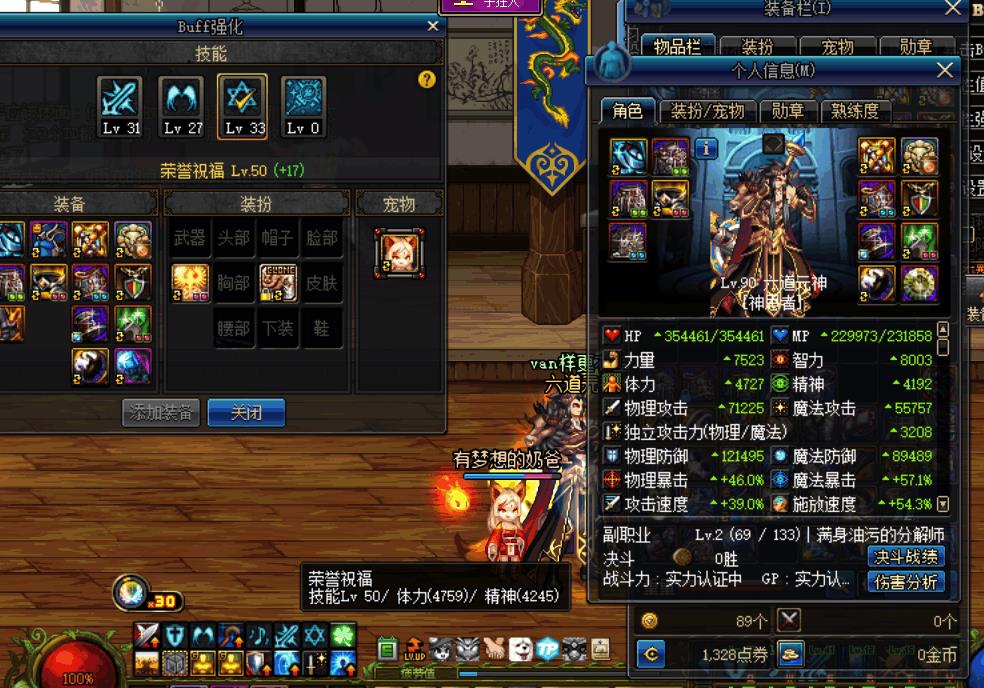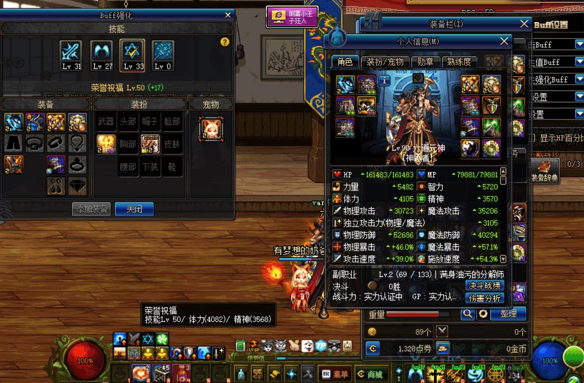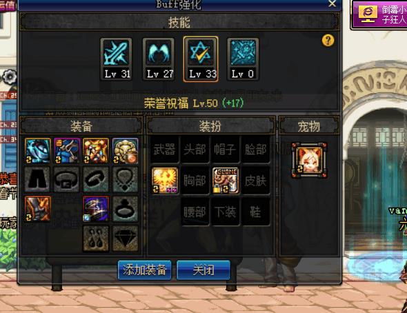 DNF换装登记之荣誉祝福,buff强度不体现在常驻装备的体精值